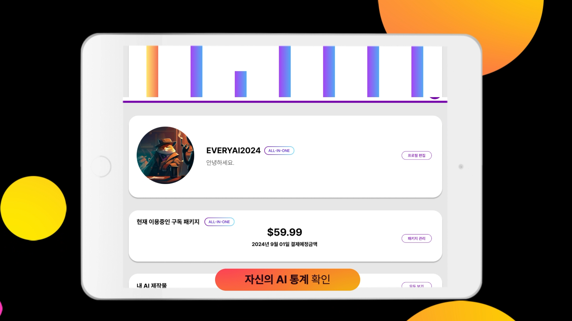 <EVERY AI>는 말 그대로 모든 AI 콘텐츠 제작 사이트들을 통합한다는 의미로, 사이트를 옮겨 다닐 필요 없이 하나의 사이트에서 필요한 기능들을 가져와 원하는 장르의 AI 콘텐츠를 제작할 수 있게 하는 서비스이다. 그 뿐만 아니라 연결되어 있는 모든 사이트의 구독 관리, 사용자 통계, 정보 등 또한 제공해 주는 서비스이다.